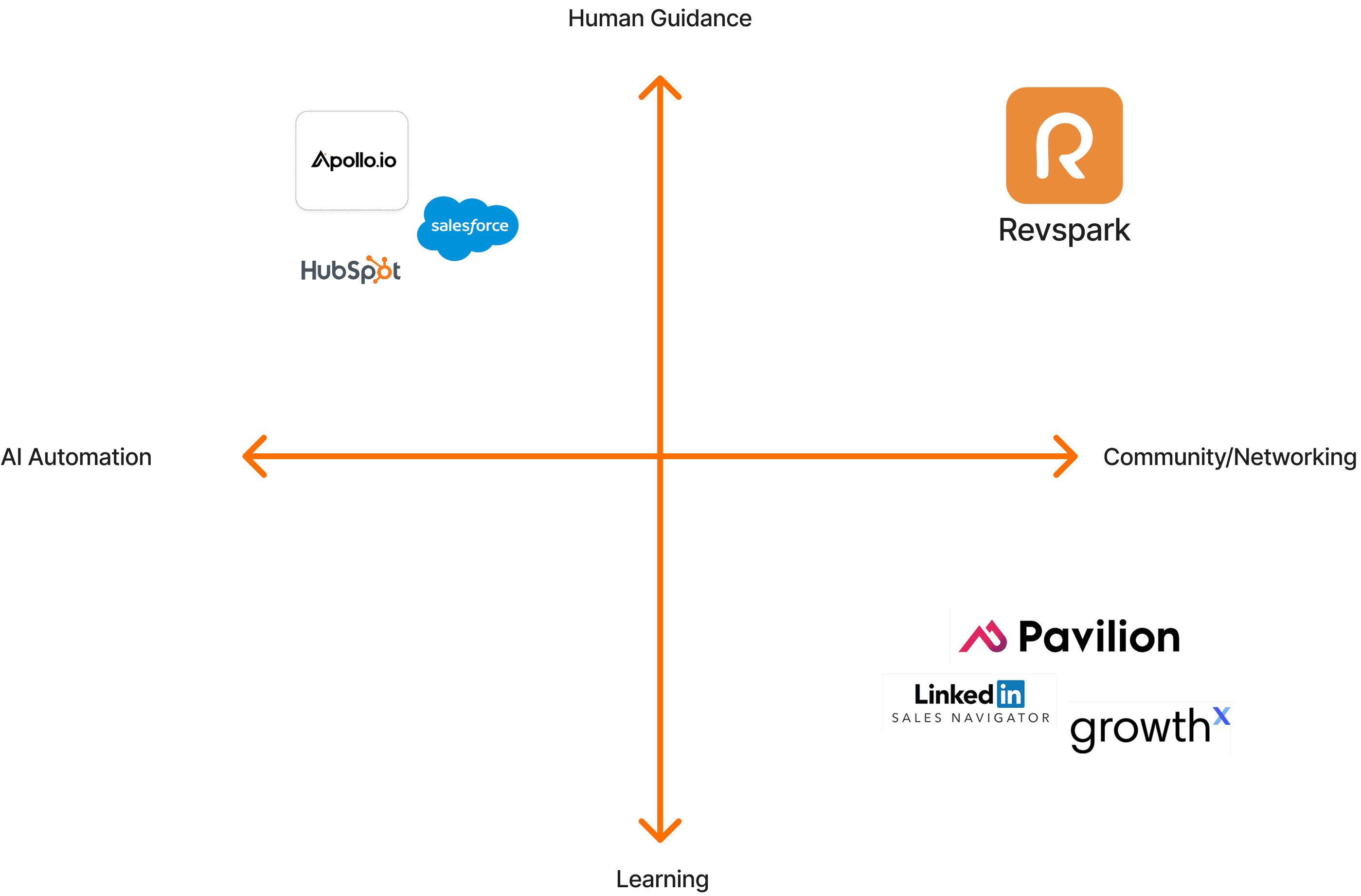 Based on the research, RevSpark was intentionally positioned between basic CRM tools and enterprise sales intelligence platforms.